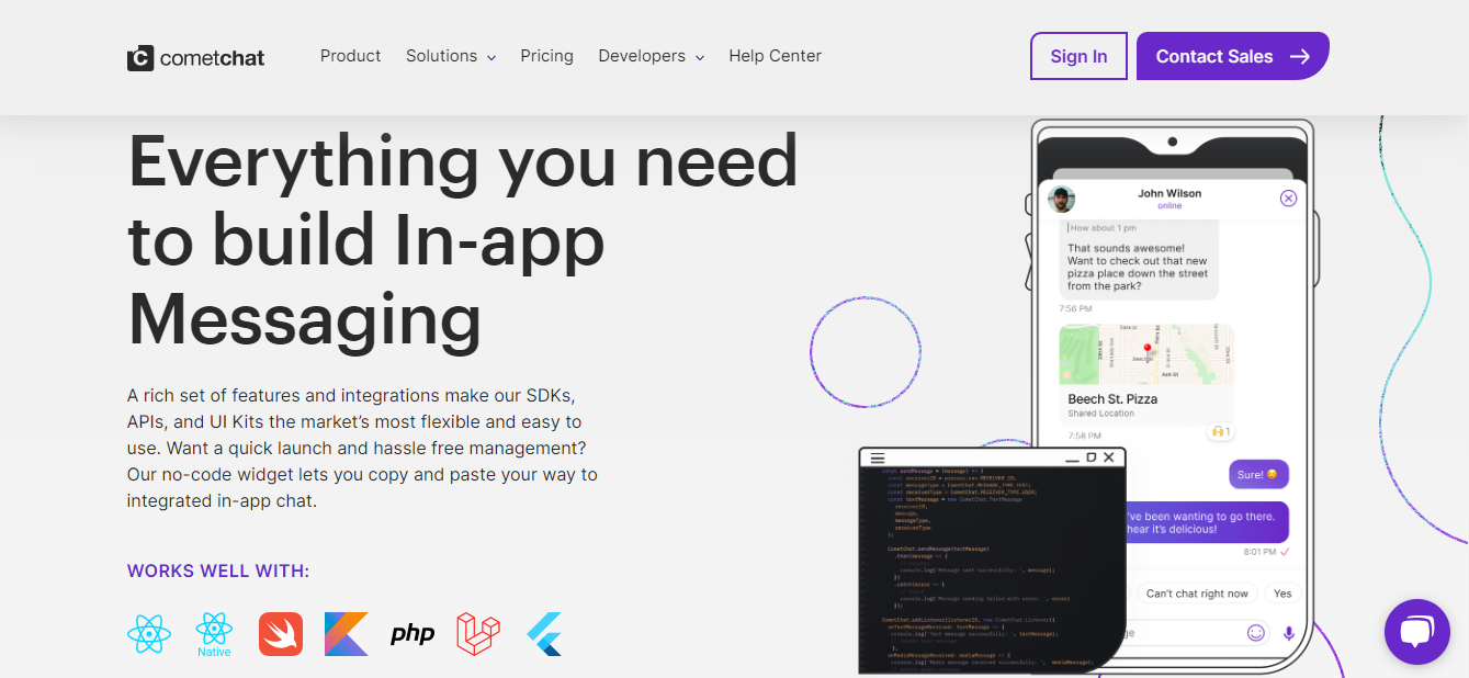 Cometchat claims that its SDKs, APIs, and UI Kits are the most adaptable and user-friendly on the market as they include a wide range of features and integrations. You may copy and paste your instructions to integrate in-app chat with their no-code widget. These idiomatic SDKs are made to aid you in producing code rapidly. They are all interoperable and accessible on iOS, Android, and the web, which makes cross-platform development simple. You'll quickly understand how they operate thanks to best-in-class documentation, in-depth tutorials, and demo apps for all of the platforms.