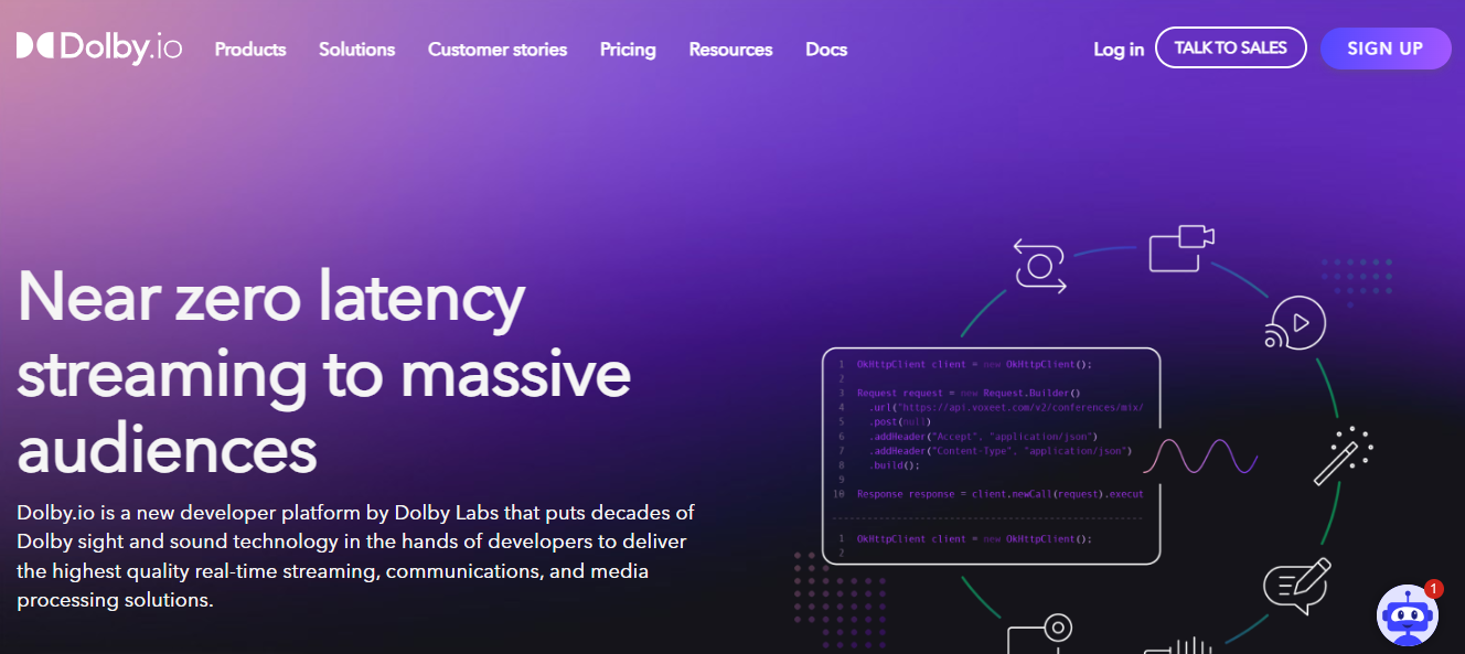 The Dolby.io Communications APIs provide access to a unified real-time communication platform that has won numerous awards and is backed by decades of expertise in the science of sight and sound. Create integrated solutions for your apps by fusing voice, video, and call recordings.